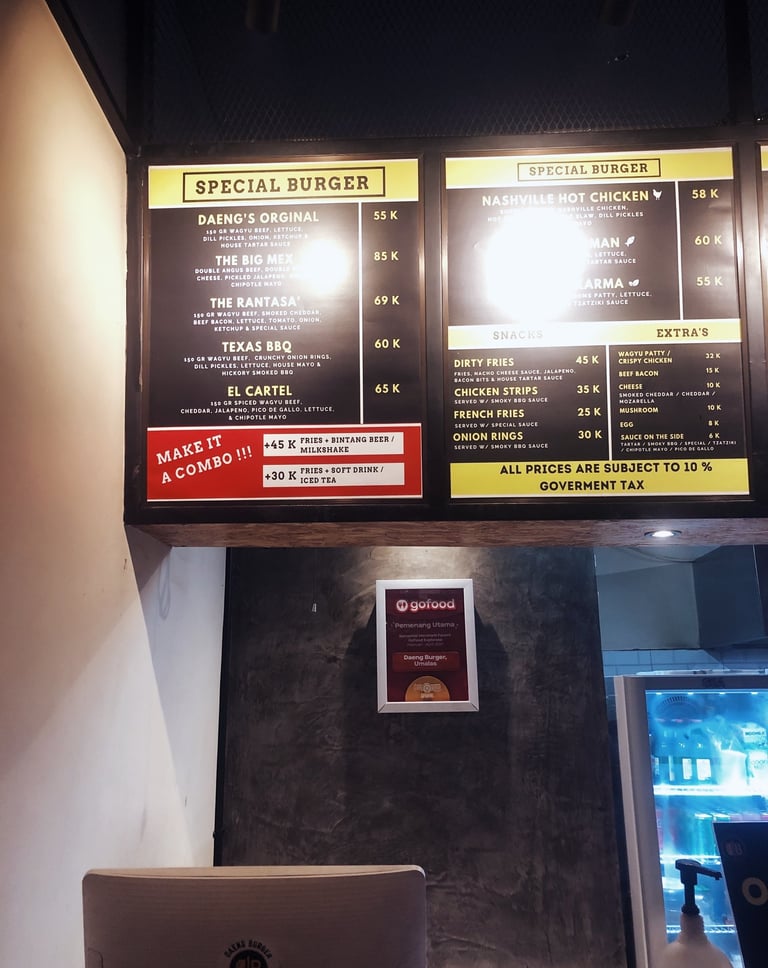To see all of their menus and promotions, you can check out their social media at https://www.instagram.com/daengburgerbali/.